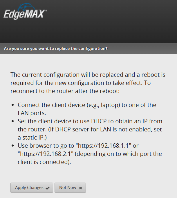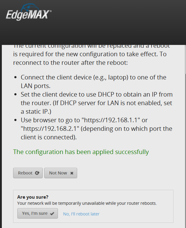 Step 12: You will see the following message once your settings are applied successfully. Select the “Reboot” option.
