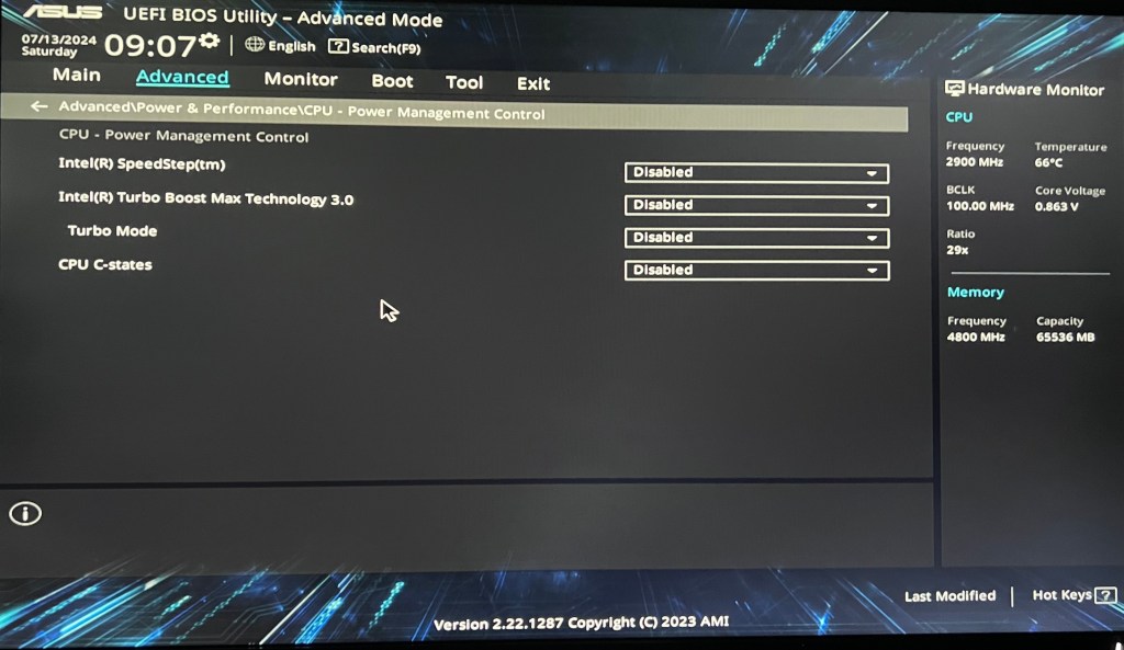 - Turbo Mode —> Disabled