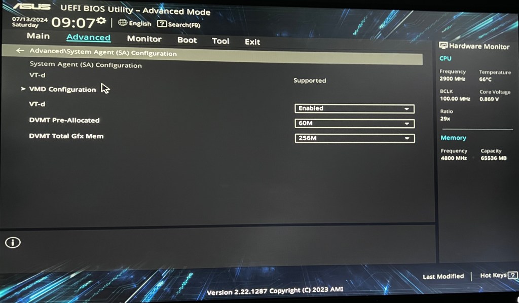 - VT-d —> Enabled