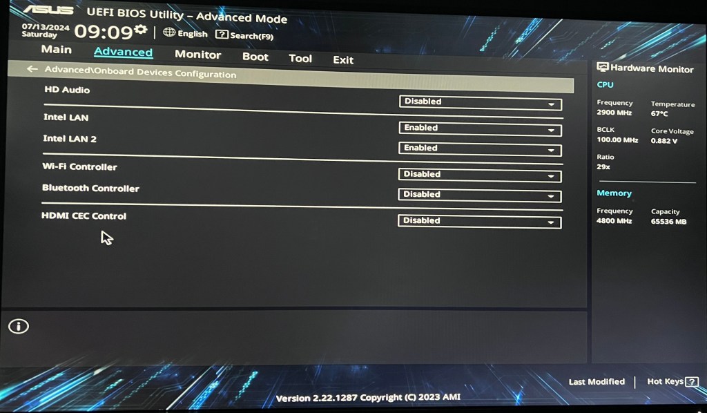 We will need to tweak some of the BIOS settings in Asus PN64-E1 before we can install Nutanix CE 2.0. We will also disable the unnecessary services from the Asus PN64-E1 BIOS.