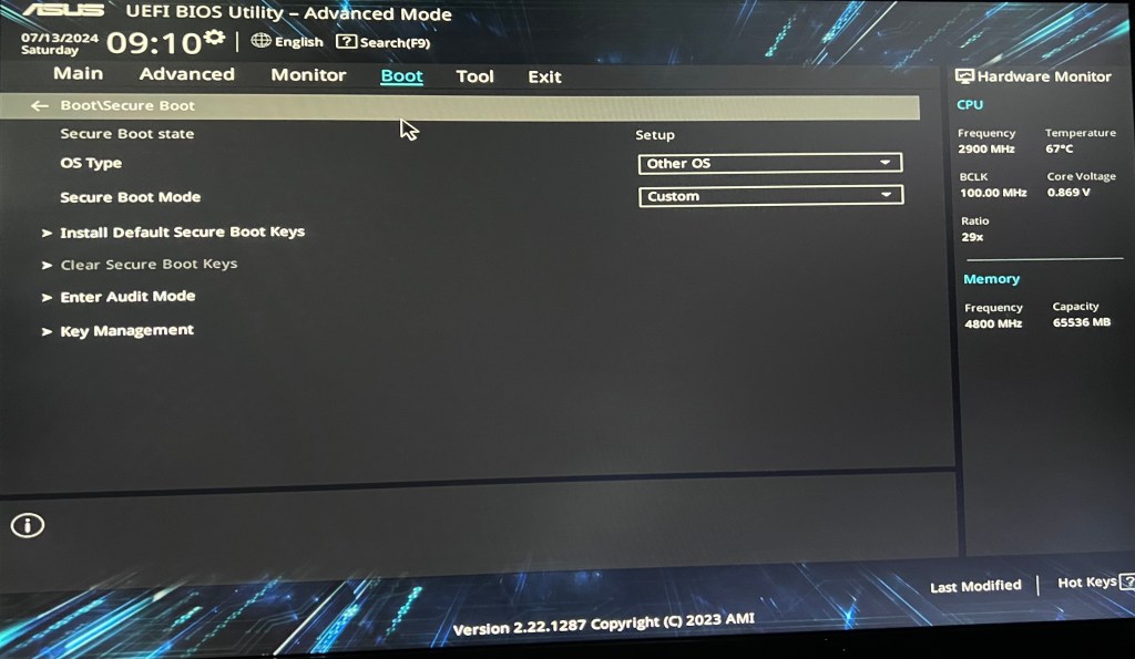 - Secure Boot Mode —> Custom